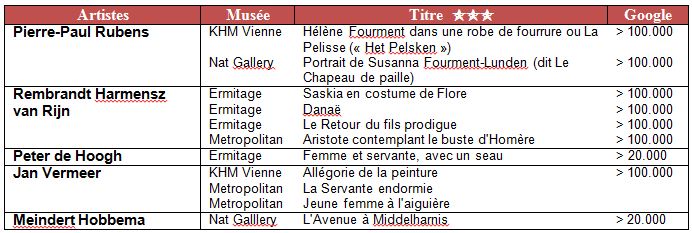 34 des 36 tableaux attribués à Vermeer sont visibles dans les musées. Le Concert a été volé à Boston dans la maison-musée de Isabella Stewart Gardner et est toujours porté manquant. Le 36e, une Femme jouant du virginal a été vendu pour 24 millions d’euros le 8 juillet 2004 à Londres et est dans une collection privée (voir ici)